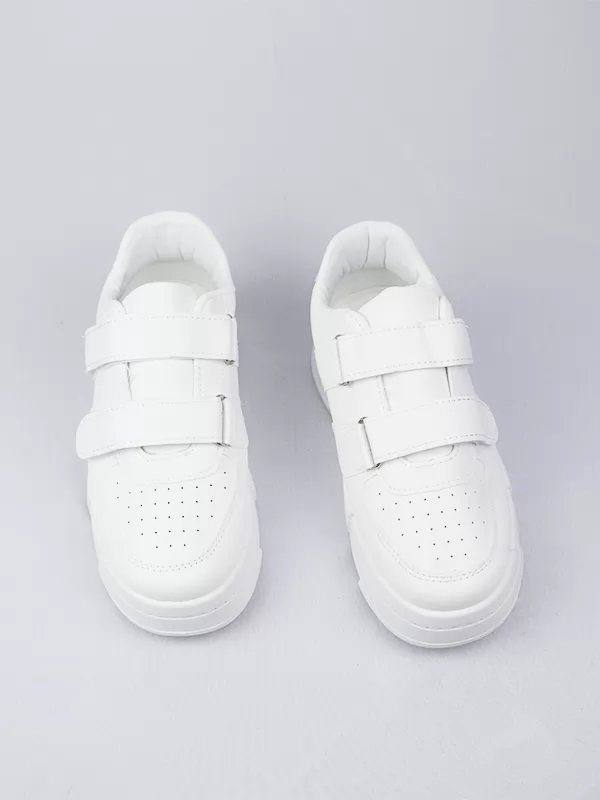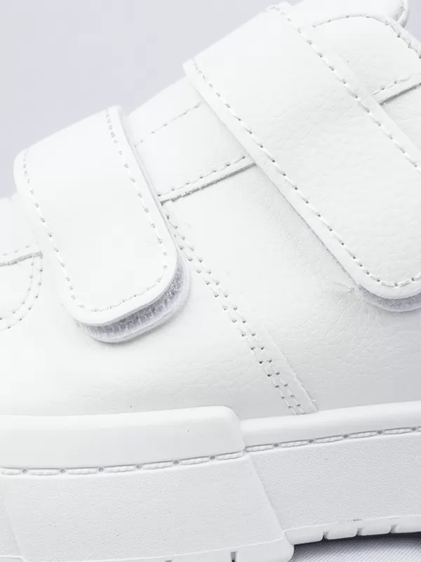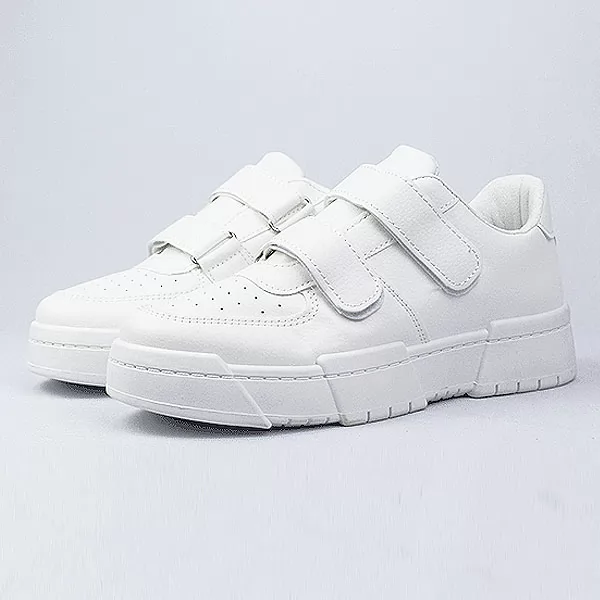 Baskets basses bicolore mat . Elles sont dotées d'un bout rond, d'un lacet en scratche, Doublure et semelle intérieure en SIMILI et textile, puis semelle extérieure en caoutchouc.